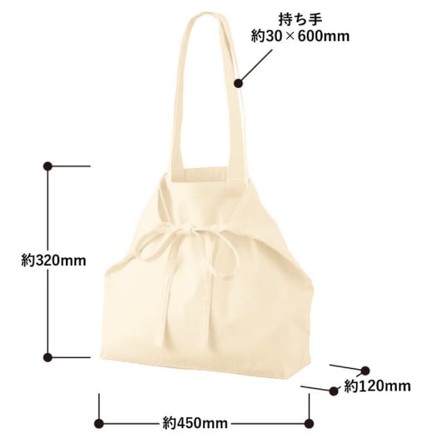 | 本体サイズ | 本体:約縦32×横45×マチ12 持ち手:約長さ60×幅3 |