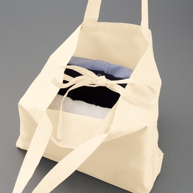 TR-1304 | MARKLESS STYLE紐リボン付きファッショナブルなオーガニックコットントートバッグです。サイドについたひもリボンの結び方を中に結んで台形型バッグに、表でリボンを結んでリボンバッグに、左右のひもの先端を結んでショルダーバッグにと、フォルムを変えながら3種類のスタイルで使用することができます。かわいらしいデザインを生かしたアパレル購入特典や女性向けノベルティ製作用にもおすすめです。