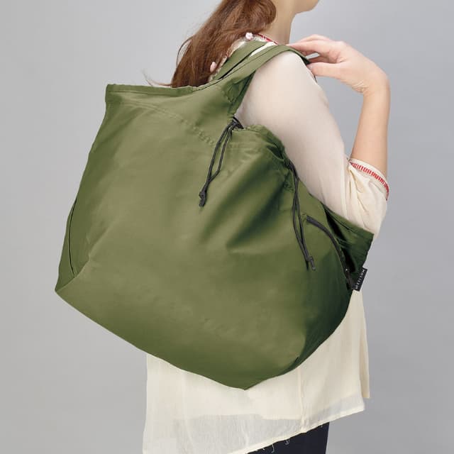 ゴムバンドでくるりとコンパクトにまとめて持ち運びができるエコバッグです。レジカゴサイズの大容量なので、買い物バッグとしてだけではなく、旅行やランドリーバッグとして幅広くお使い頂けます。デザインも性別、年齢問わず誰からでも受け入れられるシンプルでオシャレなラインナップとなっており、しわになりにくいこだわりの生地を使用しておりますファミリー向けイベントや販売店のノベルティやキャンペーンの景品としておすすめの商品です。
