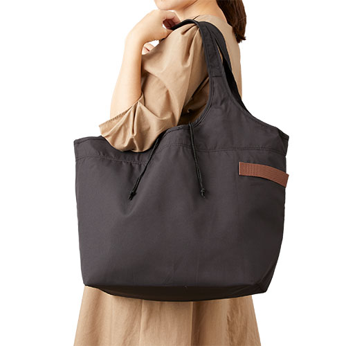 外側に付いているベルトは車からの荷降ろしや少し手を開けたい時に、傘等を引っ掛けることが出来るなど、機能性にこだわったお買い物バッグです。