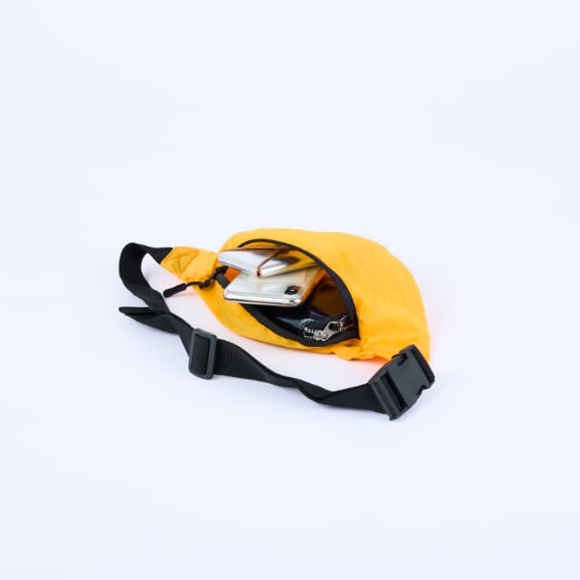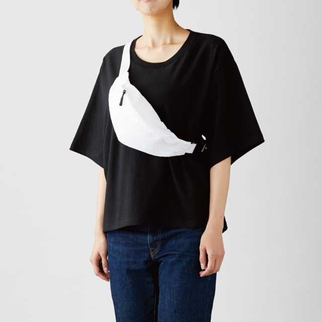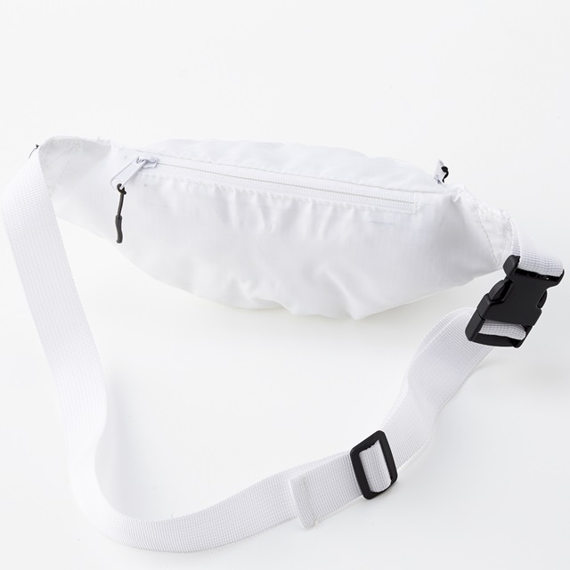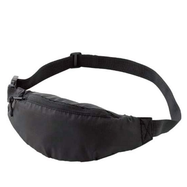 ポリエステル100%のウエストポーチ。水や汚れを弾く撥水加工が施された丈夫な生地です。アジャスター付きでストラップの長さを調整できるので、短く肩掛けするのもおしゃれです。背面部分にもポケットが付いているので、貴重品を入れるのにも適しています。アウトドア系のブランドオリジナルグッズや、個人販売用としてもおすすめのかっこいいウエストポーチです。