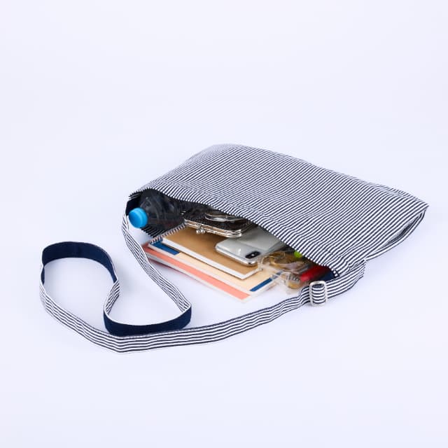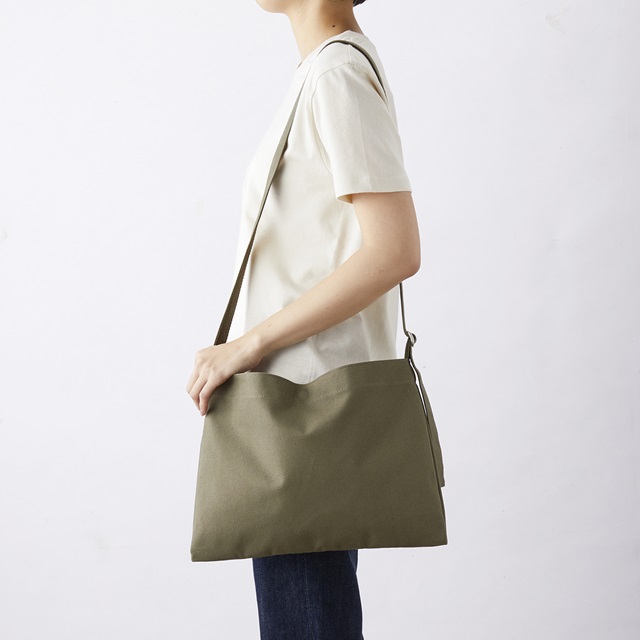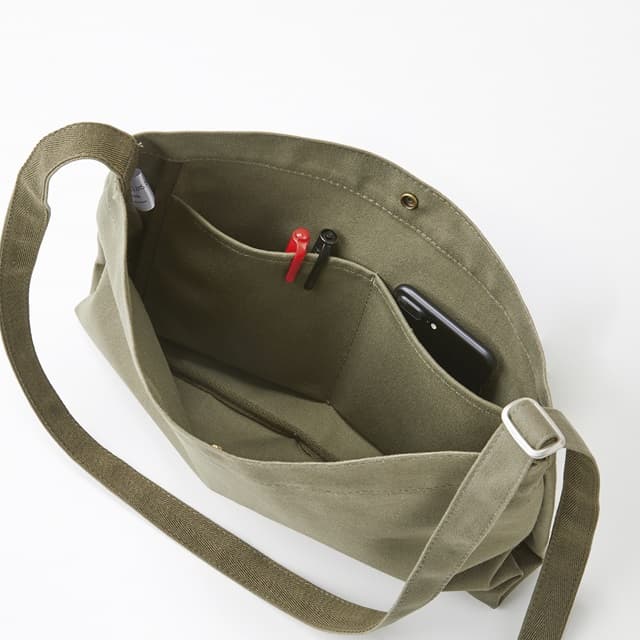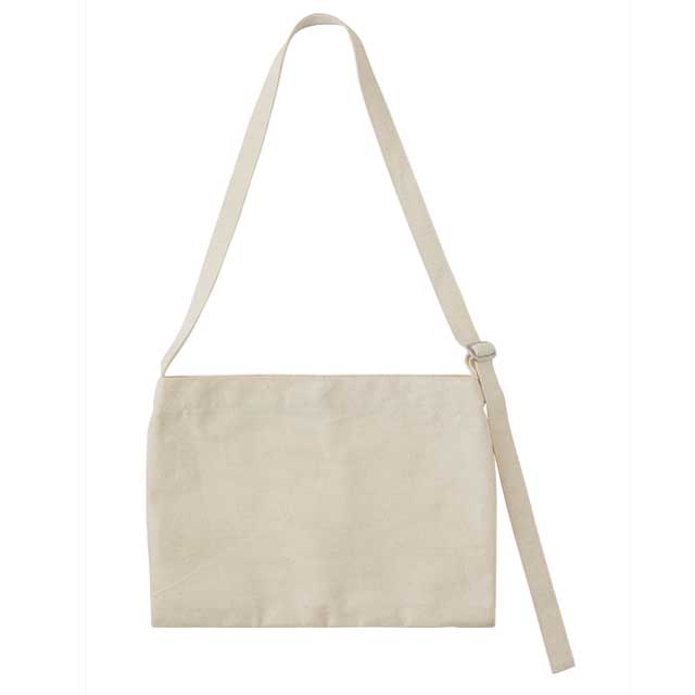 12オンス生地の内ポケット付きキャンバスサコッシュ。シンプルかつナチュラルなデザインで、大きさはA4サイズが横向きですっぽり入るサイズです。大きめの内ポケットは2つに分かれているので、鍵とスマートフォン等入れたいものを分けてお使い頂けます。厚手でしっかりとした生地なので、アウトドアや通学など普段使いとしてはもちろん、アパレル販売用としてオリジナルデザインを入れてもおしゃれです。