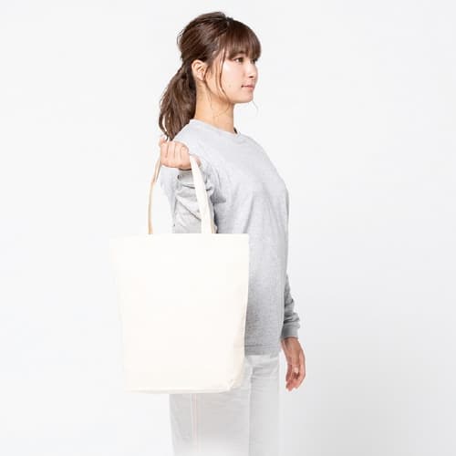 A4がきれいに収まるマチありトート。お買い物からビジネスまで、日常使いにピッタリのサイズです。耐久性のあるキャンバス生地で、触り心地が柔らかく使いやすいトートバッグです。幅広の約11㎝マチで書籍などの厚みのある荷物もたくさん入ります。ベーシックで普遍的なデザインとカラーでご用意しました。オリジナルプリントや刺繍を施して、エコバッグやノベルティとしてご利用いただくのもおすすめです。
