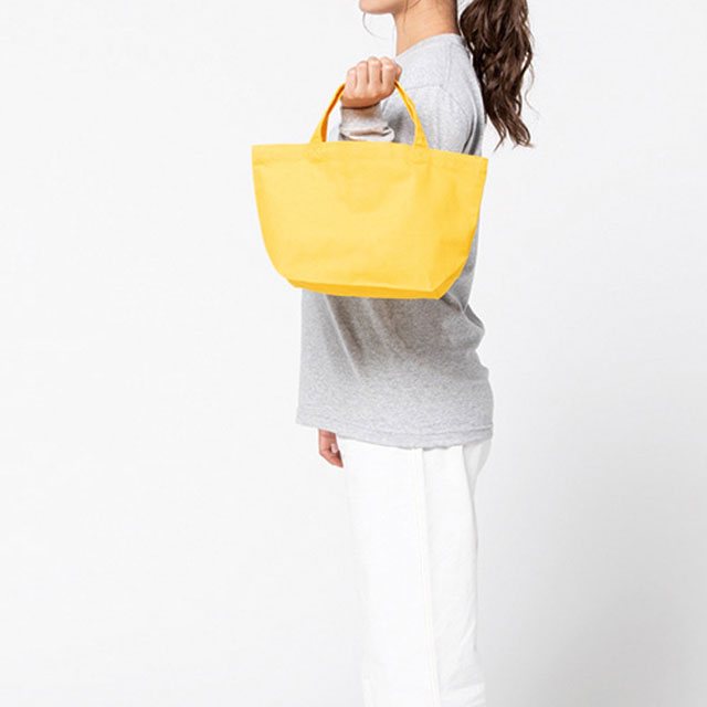 豊富なカラーを取りそろえた定番のキャンバストート。こちらはミニトートの中でも実用的なサイズ感で、Sサイズと比べて横幅が大きくマチも広いので、荷物がやや多い時にも安心です。同品番の大きいバッグと合わせてサブバッグとしてお使いいただいても素敵です。明るいカラーが多いので、シンプルなロゴを入れてアパレル商品として販売するのもおすすめです。