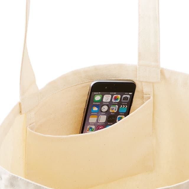 TR-1050 | MARKLESS STYLEオーガニックコットンを使用したA4サイズが入るマチ付トートバッグです。小物が入る内ポケットが付いたバッグは、さっと取り出したいものを入れておくのに大変便利です。使用しているオーガニックコットンは無農薬で栽培された環境にやさしい素材ですので、環境保全への取り組みのアピールにも繋がります。アパレルグッズ販売用やイベントでのオリジナルバッグ製作にもおすすめです。サイズは他にもS(品番:TR-1049)・L(品番:TR-1051)がございます。