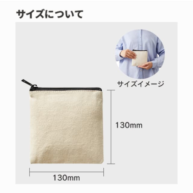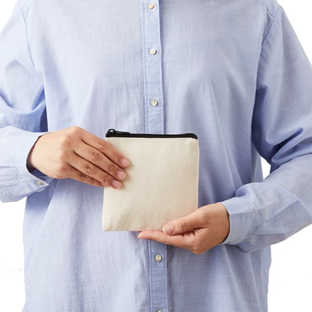 TR-1055 | MARKLESS STYLE正方形のフォルムをしたキャンバス生地のフラットポーチです。コンパクトサイズの小さめポーチは、イヤホンや飴などの小さな小物類をしまうのに非常に便利。お財布代わりとしてもおすすめです。ベーシックでプリントが映える、ナチュラル・ナイトブラック・ネイビーの3色展開でご用意しました。イベント販促品としてはもちろん、キャラクターグッズやレジャー施設の物販品としてもおすすめです。