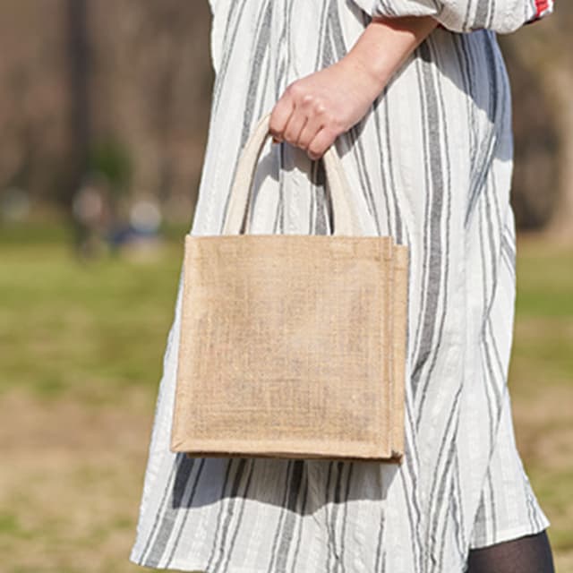 TR-1004 | MARKLESS STYLE人気のジュートバッグ。地球にやさしい天然素材を使用しているので、販促品としてはもちろん、オーガニックコスメや食料品店などのパッケージとしてもおすすめです。ランチタイムのお弁当などの持ち歩きや、ちょっとしたお出かけのバッグにぴったりなサイズです。ざっくりしたナチュラルな素材感は、バッグとしてだけでなく、インテリアとして飾ってもおしゃれです。※生産過程で色味に誤差が生じることがございます、予めご了承願います。
