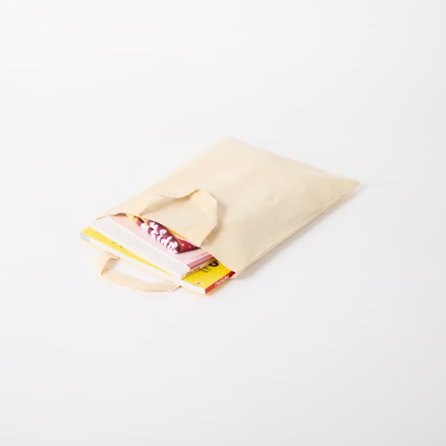 TR-1011 | MARKLESS STYLE様々な用途にお使いいただける、王道フラットタイプのトートバッグ。薄手の平織りシーチング生地よりも中身が透けにくい仕様になっています。A4サイズがぴったり入るマチなしタイプは、中に書類やカタログなどを入れて持ち歩くのにとても便利です。ノベルティで多く使われる定番商品!説明会や展示会、オープンキャンパス、ライブ物販などで書類やカタログを入れるのにもぴったりです。