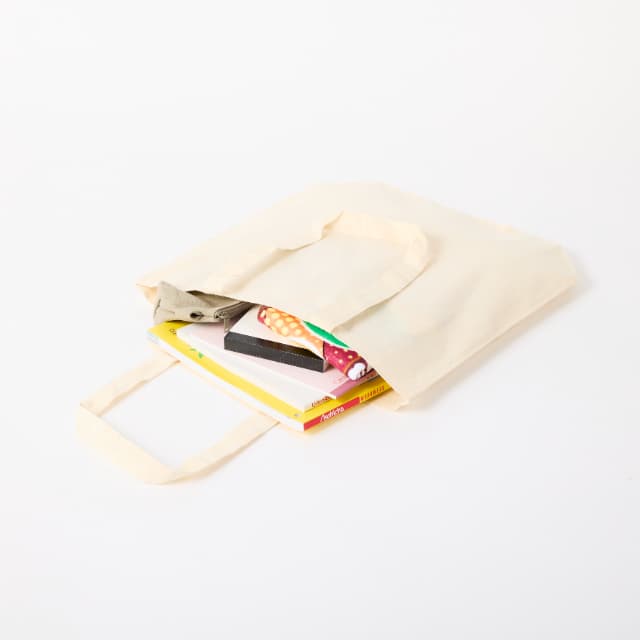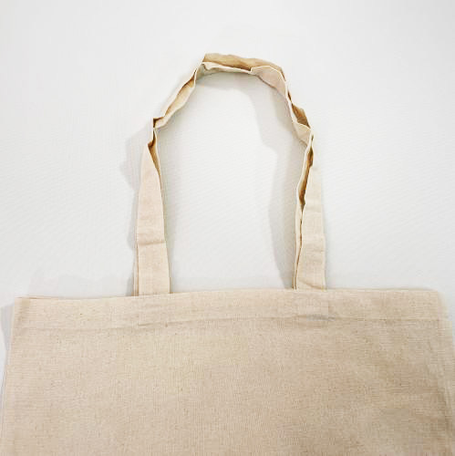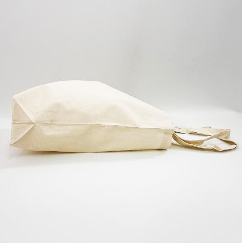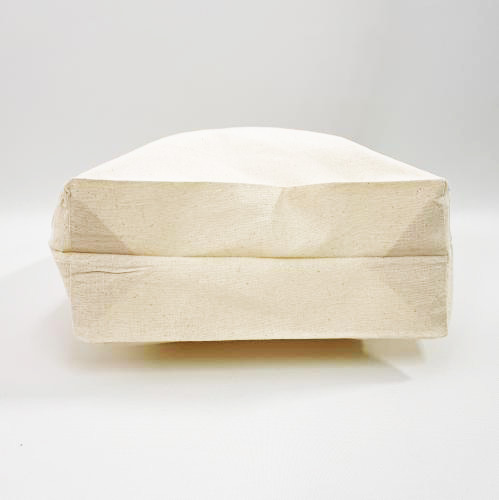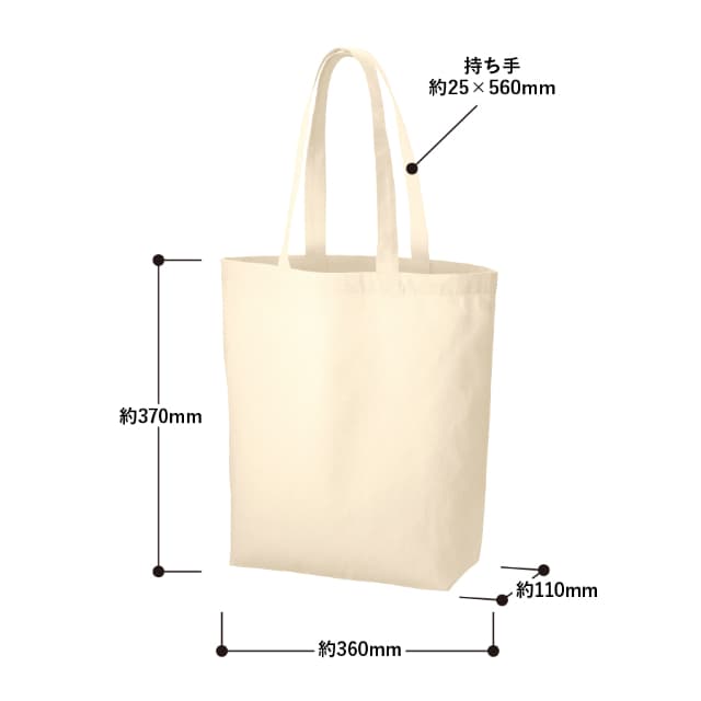 TR-1012 | MARKLESS STYLEたっぷり約10L入るサイズの厚手コットンバッグ。薄手の平織りコットン生地よりも厚手で、中身が透けにくい仕様です。書類やカタログなどを入れて持ち歩くのに便利です。マチ付きでかつ肩掛けができるため、普段用にエコバッグとして使うのにもおすすめです。説明会や展示会、オープンキャンパスの資料配布やライブ物販、お買いものバッグなど幅広い用途でお使いいただけます。