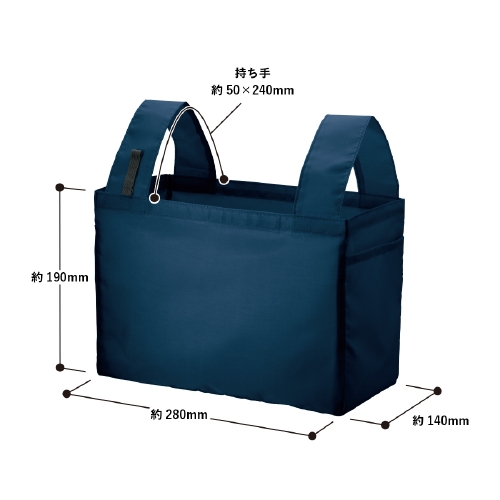 | 本体サイズ | 本体:約縦19×横28×マチ14 持ち手:約長さ24×幅5 |