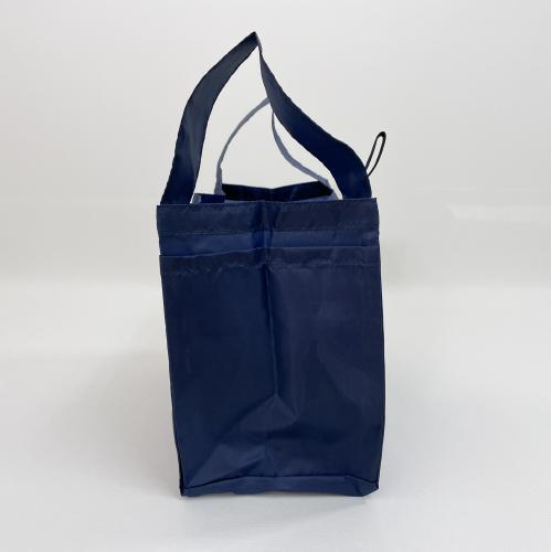 お弁当を入れるのにぴったりな底マチのあるバッグです。スマートフォンも入るサイドマチ付!スクエア型仕様のため、お弁当など中に入れたものを安定して持ち運ぶことができます。くるっと丸めてゴムで留めればコンパクトになるので、急なお買い物のサブバッグとしても便利です。お店のロゴマークをプリントしてお店のPR用として、ノベルティや販売用での製作におすすめです。