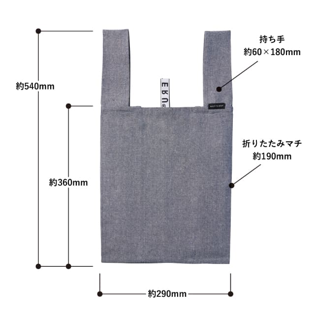 | 本体サイズ | 本体:約縦36(持ち手含む54)×横29 持ち手:長さ18×幅6 折りたたみマチ:約長さ19 |