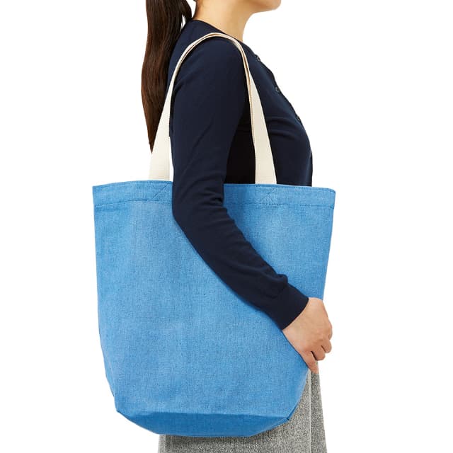 環境に配慮した再生コットンを使用したシャンブリックのトートバッグです。マチのあるA3サイズが入る大きさで、重い荷物も安心して持ち運びできます。肩にかけられるちょうど良い長さの持ち手になっており、大きめのサイズなのでまとめ買いや荷物が多いときなどにも大活躍!プリントが映えるカラーでご用意しました。サブバッグや通学にも便利なバッグです。こちらの商品はSサイズ(品番:TR-1143)、Mサイズ(品番:TR-1144)もご用意しております。