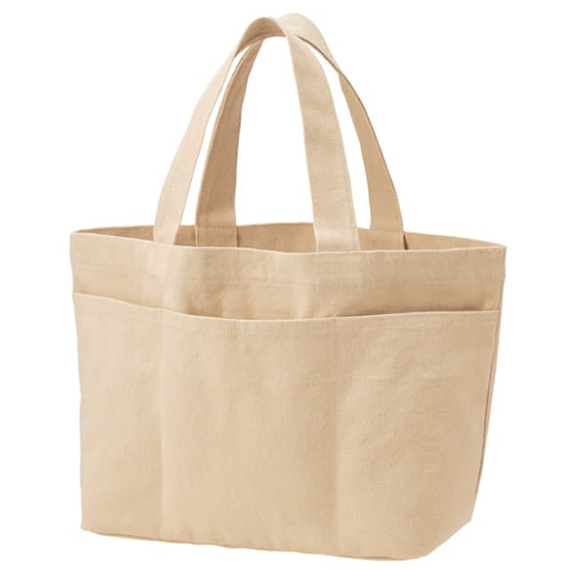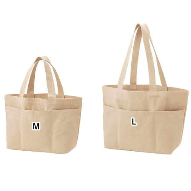 TR-1325 | MARKLESS STYLE程よいウォッシュの風合いがおしゃれなトートバッグです。正面にポケット3つがついており、デザイン性だけではなく利便性にも優れています。M・Lの2サイズ展開で、Mサイズはランチバッグとしても、またボトルや傘などもしっかり入るためお出かけバッグとしてもぴったりです。ランチバッグとしてお使いいただく他にも、食品店の購入特典やブランドロゴ入りノベルティなどにもおすすめです。