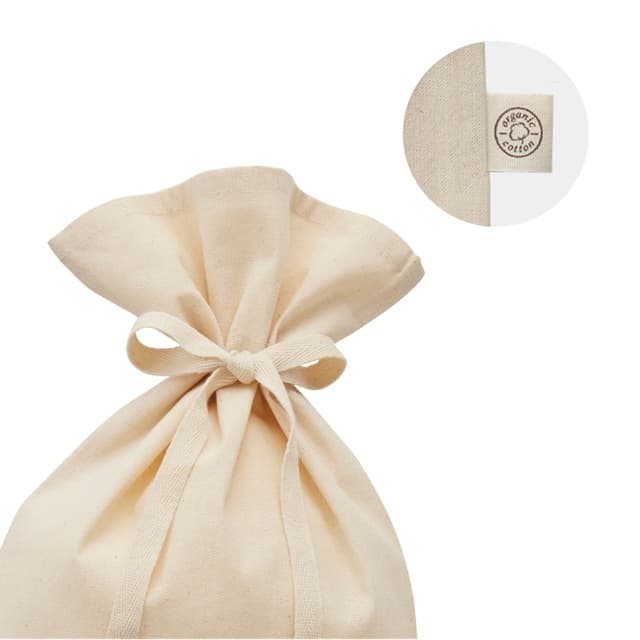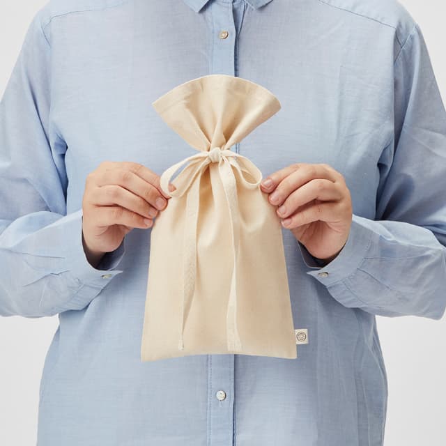 オーガニックコットン生地を使用した、ギフトにぴったりな巾着です。環境に配慮した特別な生地を使用しているので、企業様のSDGs活動の貢献にもご活用いただけます。この巾着で包装して渡すことで、より一層特別な思いを込めた贈り物になること間違いなしでしょう。また、巾着1つから環境のことを考えられるなんて、素敵なお話ですね。あなたも、是非この巾着で贈り物をしてみませんか。