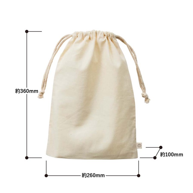TR-1170 | MARKLESS STYLE地球に優しい素材で作られたオーガニックコットンを使用した、マチ付きの巾着です。Tシャツなどが入る少し大き目のサイズ感で、物を入れても形がきれいに保てるのはマチ付きだからこそ!厚みのある物も気にせずに収納できますね。本体からひもまで全てオーガニックコットン素材で作られたこだわりの商品なので、企業様の環境保護活動などのイメージアップにも一役買ってくれることでしょう。