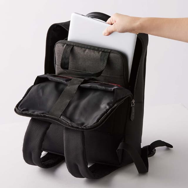 TS-1715 | MARKLESS STYLE13.3インチノートPC対応の、すっきりとしたデザインの縦型収納バッグ。ポケットもついているので文房具や小物も収納できます。社内打ち合わせの移動時にも、他に資料などある場合は手首にかけることができる便利な仕様になっています。PCの収納以外にも、バッグインバッグとしてもお使い頂けます。企業スタッフ用として、ビジネスマン向け物販品としておすすめの商品です。