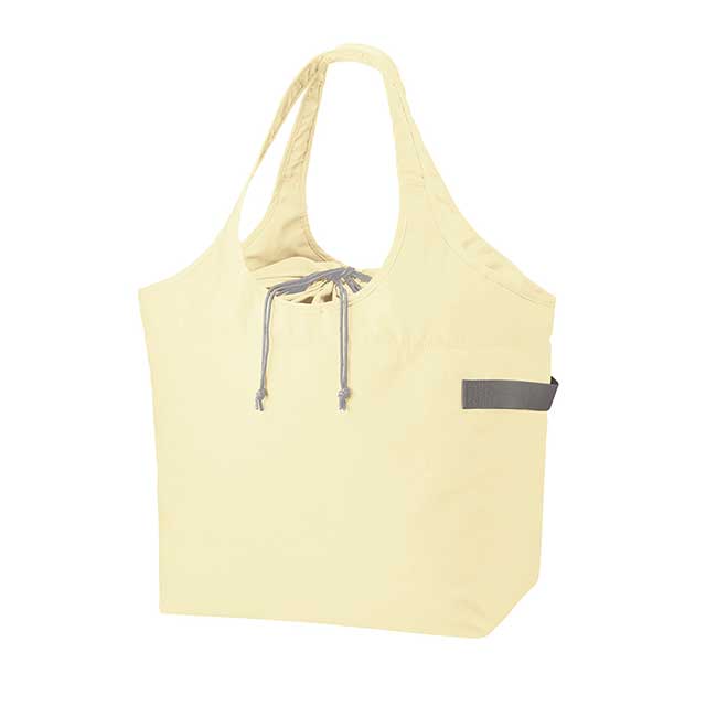 TR-1208 | MARKLESS STYLEコンパクトに収納できるクルリトシリーズより新カラー、保冷タイプの大容量マルシェバッグのご紹介です。バッグ内側のアルミがしっかりしているので、物を入れるときも自立して入れやすく、2Lペットボトルや牛乳パックが固定できるゴムバンドが付いております。口の大きい巾着仕様で物の出し入れがしやすく、荷降ろし時の引き手としてや傘掛けとして使用できる外側のベルトなど、機能性にもこだわっています。レジカゴ対応の大容量サイズとなっており、成約記念品やポイント交換の記念品としてもらってうれしい商品です。