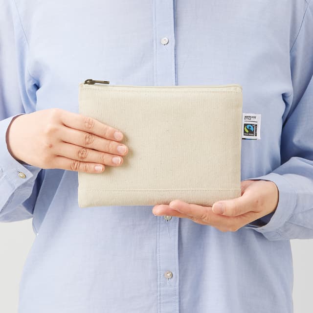 TF-0008 | MARKLESS STYLEフェアトレード認証のオーガニックコットンを使用した、バッグにすっきり収まるフラットポーチです。カラーは使いやすい5色をご用意しました。お友達同士や学校のメンバーでお好きな色を選び、お揃いのポーチを作ってみてはいかがでしょう。バッグの中で散らばりがちな小物をまとめるのにちょうど良い大きさです。厚みがあり丈夫な生地で作られているため中身が透けることもなく、長くご愛用いただけます。
