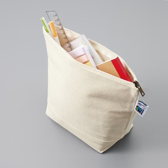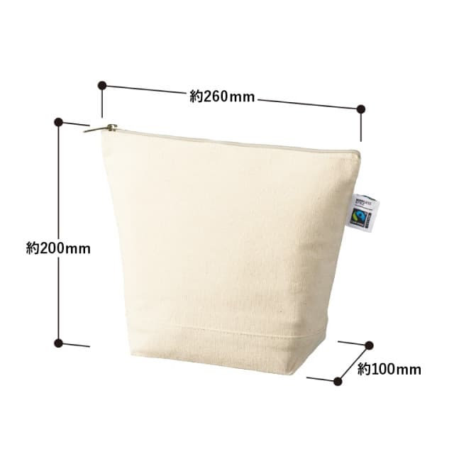 フェアトレード認証のオーガニックコットンを使用した、人気のあるマチ付き舟形ポーチです。カラー展開は5色あり、使いやすい色ばかり。メイク用ポーチとしてなど普段使いはもちろん、トラベルでのご使用にもぴったりのアイテムです。地球にも優しい自然素材のおしゃれな販促アイテムとしてアパレルやコスメティック、オーガニックを取り扱っている企業様にもおすすめです。