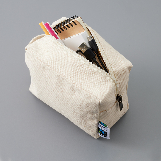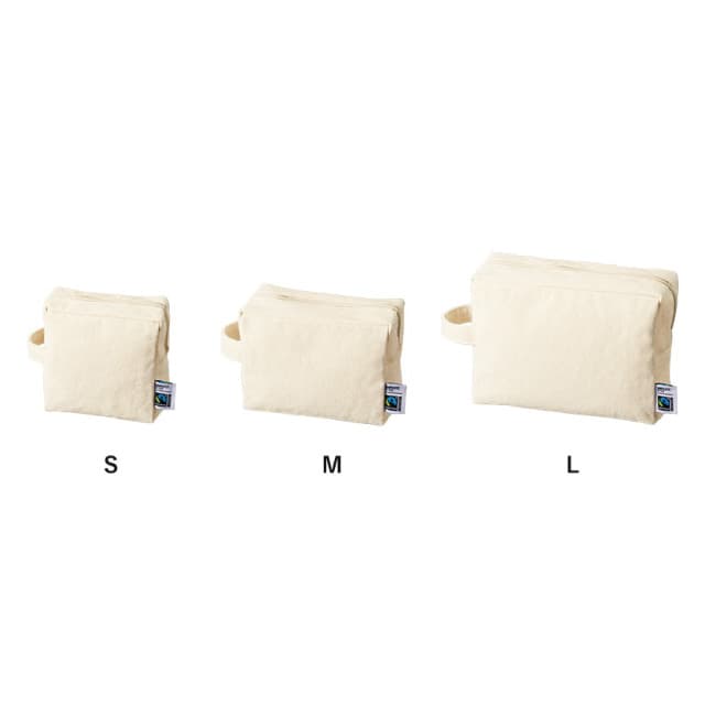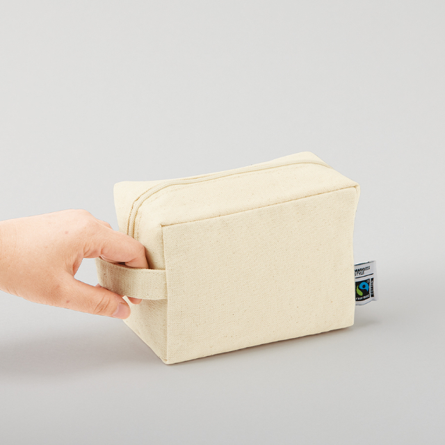 TF-0014 | MARKLESS STYLEサイドループ付で持ちやすい、収納力抜群の優秀なスクエア型のポーチです。フェアトレード認証のオーガニックコットンを使用しています。カラー展開は5色あり、使いやすい色ばかり。Mサイズは長方形型で、バッテリーなどのスマホ用品、文房具、コスメなどの収納にぴったりのサイズ感です。地球にも優しい自然素材のおしゃれな販促アイテムとしてアパレルやコスメティック、オーガニックを取り扱っている企業様にもおすすめです。