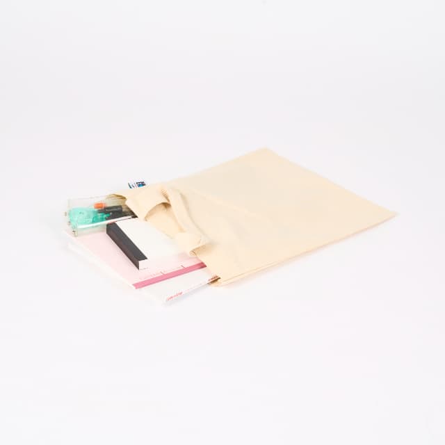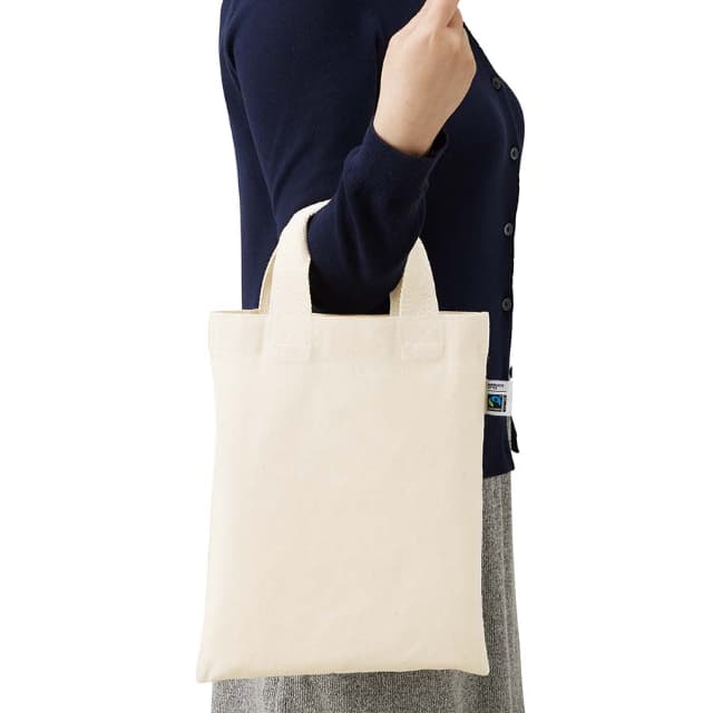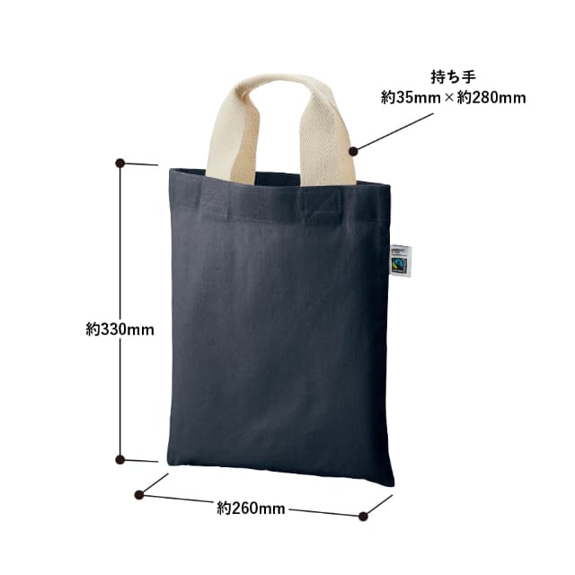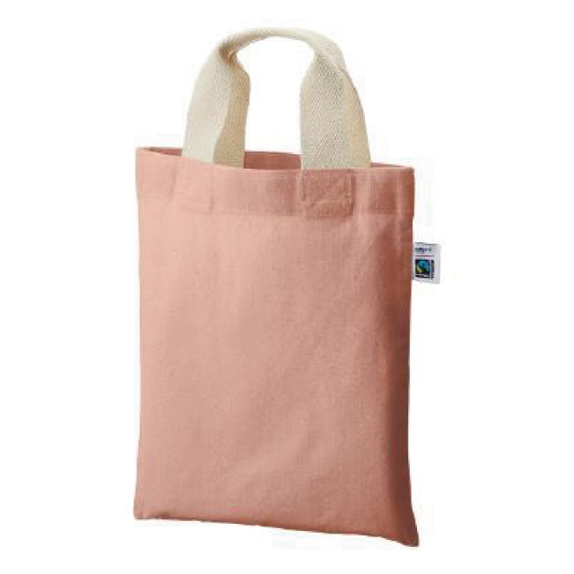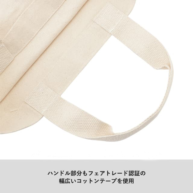 バッグ本体や持ち手、全ての素材に「フェアトレード認証」のオーガニックコットンを使用したバッグです。幅広い用途に使いやすい、A4サイズが入るマチのないバッグで、持ち手部分は持ちやすくしっかりと二つ折り縫製がされています。国際的に認められた素材を使用しているので、企業やショップのサステイナブルへの取り組みや安心安全をアピールするのにも適した商品です。※フェアトレードとは発展途上国の原料や製品を適正な価格で購入することで、そのような国の人々の生活改善や自立を支援する活動です。