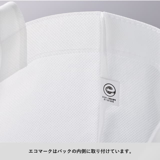 TR-1188 | MARKLESS STYLE再生不織布を使用した定番のA4サイズフラットトート。パンフレットやカタログ等資料入れにも、ショッパーにも使いやすく、幅広いニーズに対応します。バッグ内側にはエコマークがついており、環境関連のイベントやショップにもおすすめ!企業ロゴやキャラクターをきれいにプリントできますので、アピールにもつながります。オープンキャンパスの配布用バッグにもいかがですか。「不織布A4フラットトート(品番:TR-0435)」と同形状・同サイズになります。