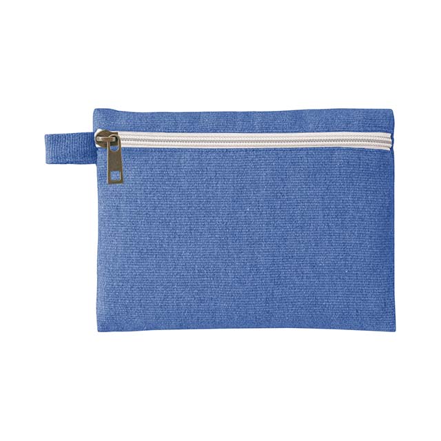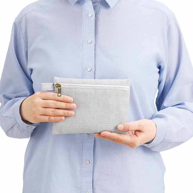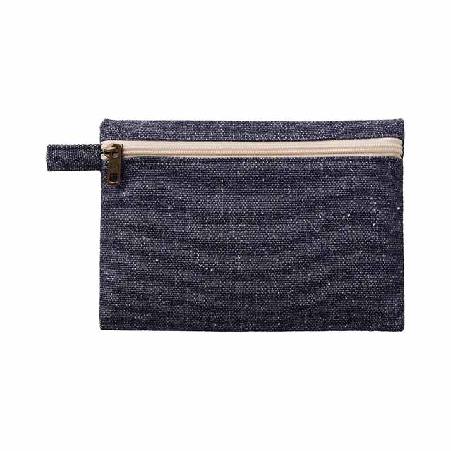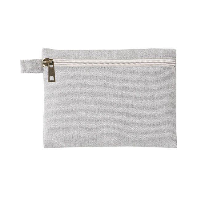 再生素材を使用した、普段使いしやすいフラット形状タイプのポーチです。フラット面にファスナーがついている為、カラビナやボールチェーン等につなげて持ち運ぶことができます。充電コードやイヤホンなどの収納や、細々したアイテムを持ち運ぶのにぴったりのアイテムです。ショップの購入品特典やオープンキャンパスのノベルティなど、おすすめの商品です。