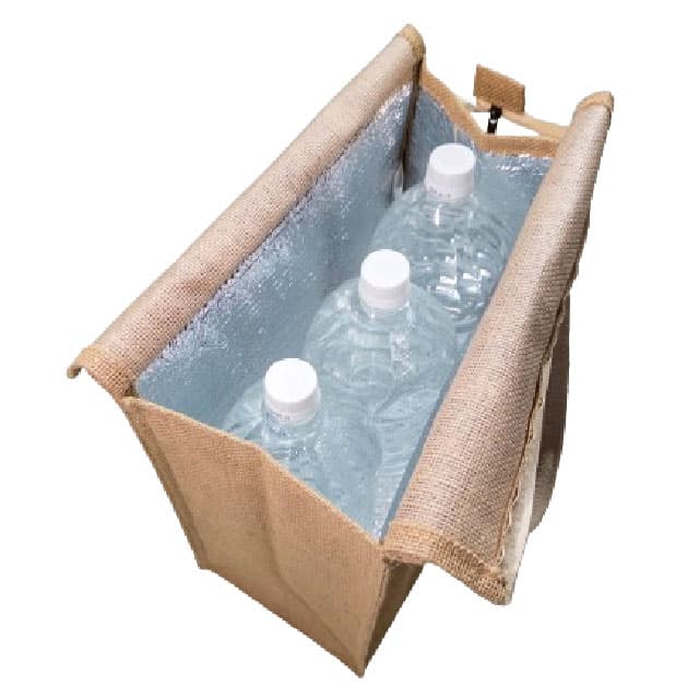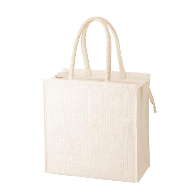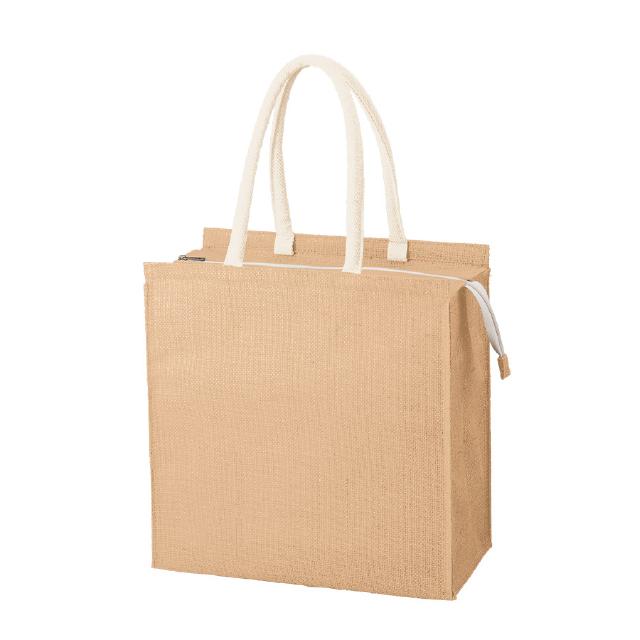 TR-1223 | MARKLESS STYLEジュート素材の保冷・保温バッグです。スクエア型の自立する形状で物が入れやすく、2Lペットボトルがぴったりと入る高さです。ハンドルの部分の長さが肩に掛けられるようになっているので、お買い物などに適しています。ファスナー仕様でしっかり口が閉じるので、中身が飛び出さず安心です。普段使いからレジャーやアウトドアまで幅広く活躍できる商品です。スーパーのオリジナルグッズや、ファミリー層向けのノベルティ、SDGsに取り組む企業様にも人気の高い商品です。