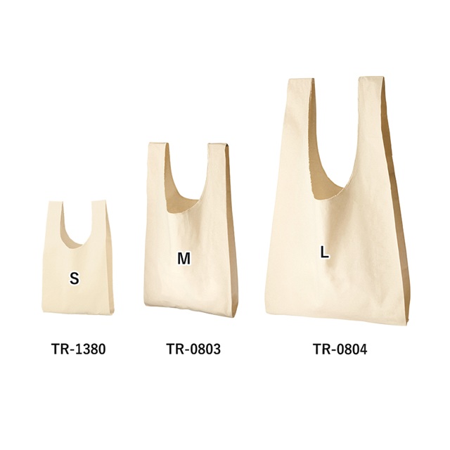 TR-1380 | MARKLESS STYLE程よい厚みが人気の、コットン素材を使用したマルシェバッグです。お弁当箱や300mLのペットボトルがぴったり入るコンパクトなサイズながら、マチもしっかり取ってあるため、見た目以上に容量のある使い勝手の良い商品です。マーケットのオリジナルグッズや集客用ノベルティとしても素敵。顧客集客に貢献すること間違いなしの商品です。こちらはMサイズ(TR-0803)、Lサイズ(TR-0804)もございます。