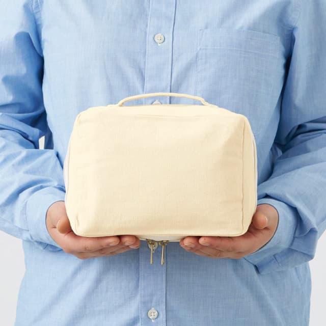 TP-0010 | MARKLESS STYLE推し活にもおすすめ!大切なキャラクターのぬいぐるみなどを持ち運ぶのにぴったりな、持ち手付きスクエアポーチです。ファスナーをぐるりと大きく開けられる仕様で出し入れがしやすく、収納力も抜群なので日常使い用としても大活躍します。サイズは2種類ご用意しました。Mサイズはぬいぐるみを入れたり、コスメが一通り入ります。下着や靴下を入れるトラベル用ポーチとしてもちょうど良いサイズです。プリントを入れてイベントグッズにもいかがですか。