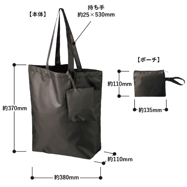 TR-1349 | MARKLESS STYLEポーチに入れてコンパクトに持ち歩ける便利なポケッタブルトートバッグ。ポリウレタンコーティングを施しているため、耐久性のあるバッグに仕上がっています。付属ポーチはホック付きストラップでトート本体に下げることのできる仕様。本体はもちろん、ポーチにもフルカラープリントを施せば訴求力も抜群です!MサイズはA4サイズを縦にいれることができる程よいサイズで、お買い物バッグやサブバッグとして、毎日持ち歩きたい商品です。ノベルティや購入特典、オープン記念などのアイテムにおすすめです。