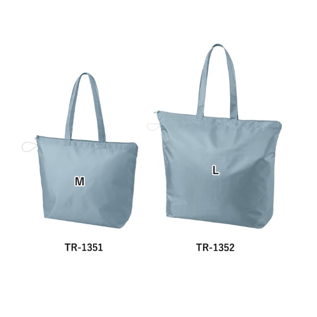 TR-1352 | MARKLESS STYLEファスナー付きで安心なポケッタブルトートバッグ。しなやかな生地で耐久性があります。ファスナーを占めれば中身の飛び出しを防ぐこともでき、安心してお使い頂けます。サイドにはコンパクトに収納できるゴムが付いており小さくカバンに入りますので、お買い物や旅行の際など荷物が増えてしまったときに、サブバッグとしても重宝します。サイズはM・Lの2つをご用意。Lサイズは2Lペットボトルが縦にいれることができるサイズになっています。