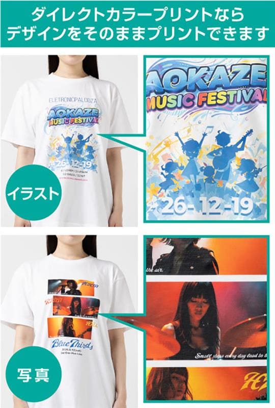 詳しくは追加注文同額サービスページよりご確認下さい。 - Q.写真印刷やフルカラーのイラストをプリントすることは出来ますか?