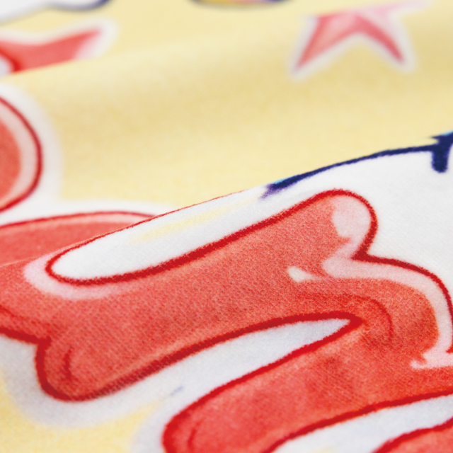 クラTジャパンの全面フルカラープリントタオルに、発色と肌触りにこだわった「染料プリント」が加わりました。繊維の奥までインクを染み込ませることで、綿100%の柔らかな手触りを活かしつつ、より深みのある鮮やかな発色を実現。さらに、洗濯による色落ちや色ムラの心配も少なく、長く快適にご使用いただけます。ふんわりとした肌触りと、全身しっかりと包める贅沢なサイズ感です。お風呂あがりはもちろん、プールやレジャーなど、幅広い場面で活躍します。タオル本来の柔らかさとナチュラルな仕上がりを楽しみたい方は、ぜひ染料プリントタオルをお試しください!