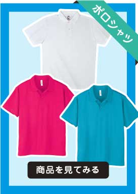ポロシャツでプリントや刺繍を作成すれば、おなじみのクラTも一味違ったお揃いウェアに!動きやすく耐久性の高いポロシャツは、企業・店舗の制服や部活のユニフォームにもばっちり!ライン入りなどデザイン性の高いアイテムもあります。
