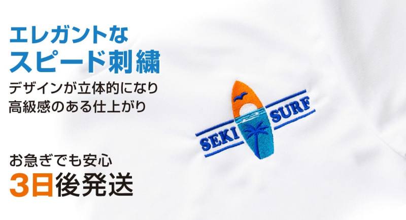 左胸:デザイン刺繍2色50cm²(タテ4.5×ヨコ10.0cm)襟下5cm