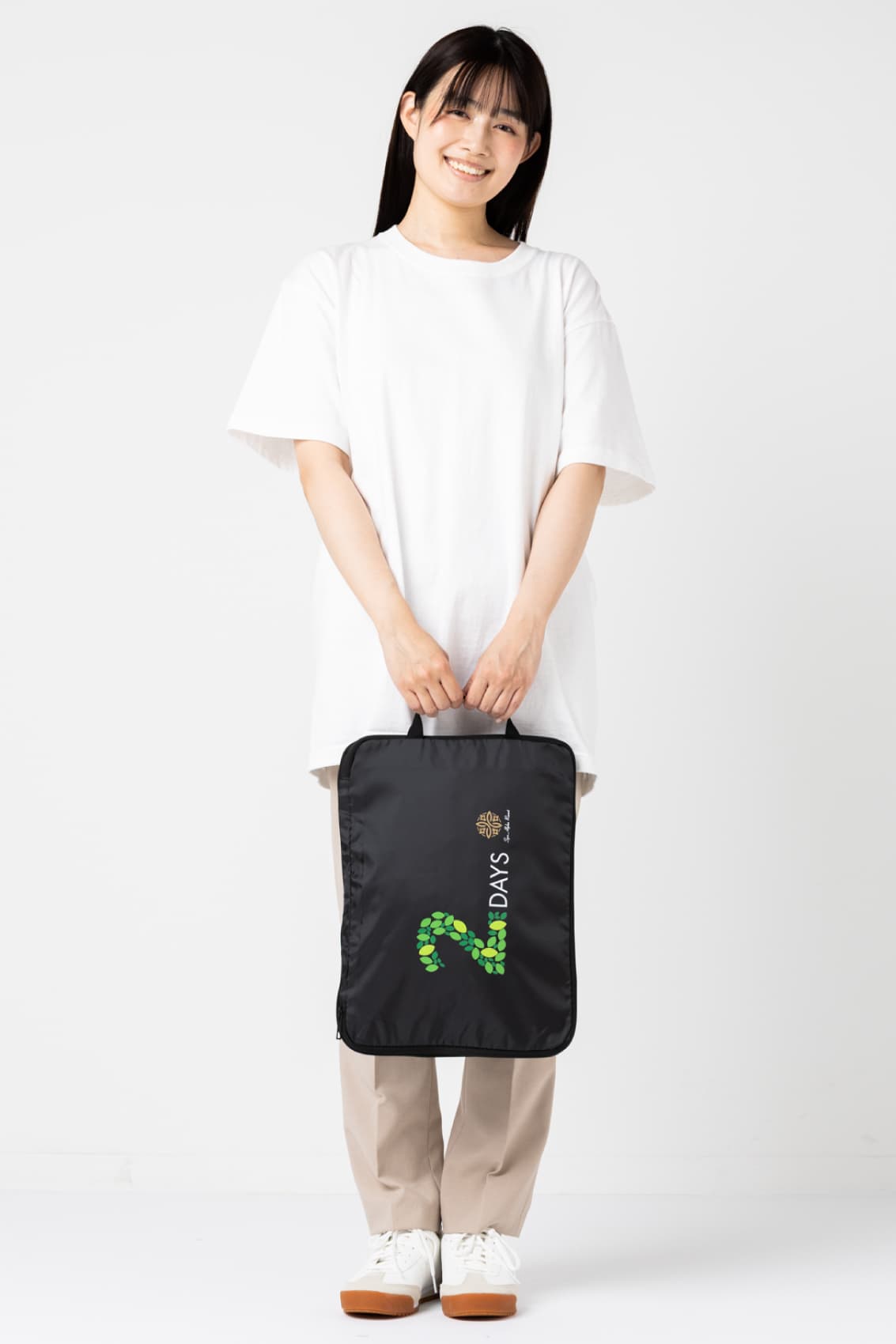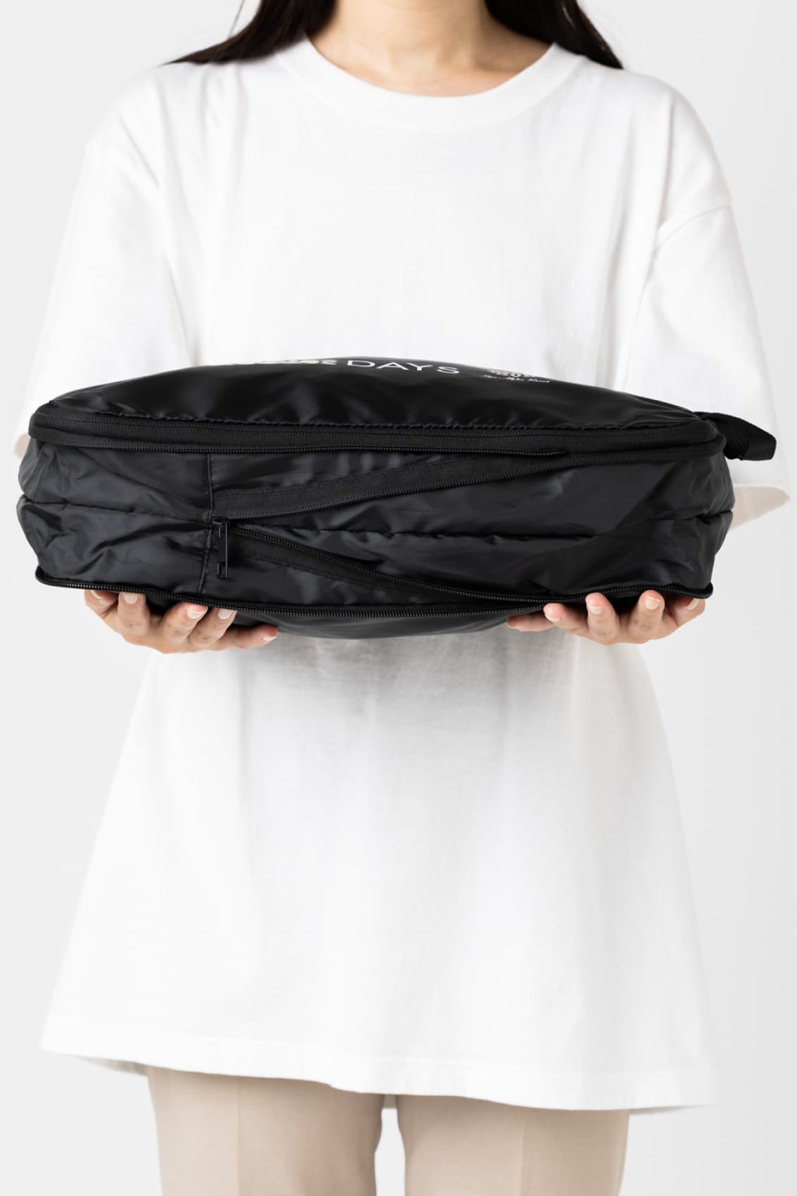 TP-0024 | MARKLESS STYLE出張や旅をスマートにする圧縮ポーチ。2カ所のファスナーで衣類をコンパクトに圧縮することで、荷物のかさばりを抑え旅行バッグのスペースを有効活用できます。旅行代理店や保険会社、レジャー関連の企業ノベルティ、旅のイベントプロモーション用として採用すれば、実用性の高さで喜ばれること間違いなし!こちらのMサイズは夏から秋の2泊程度に最適な大きさです。