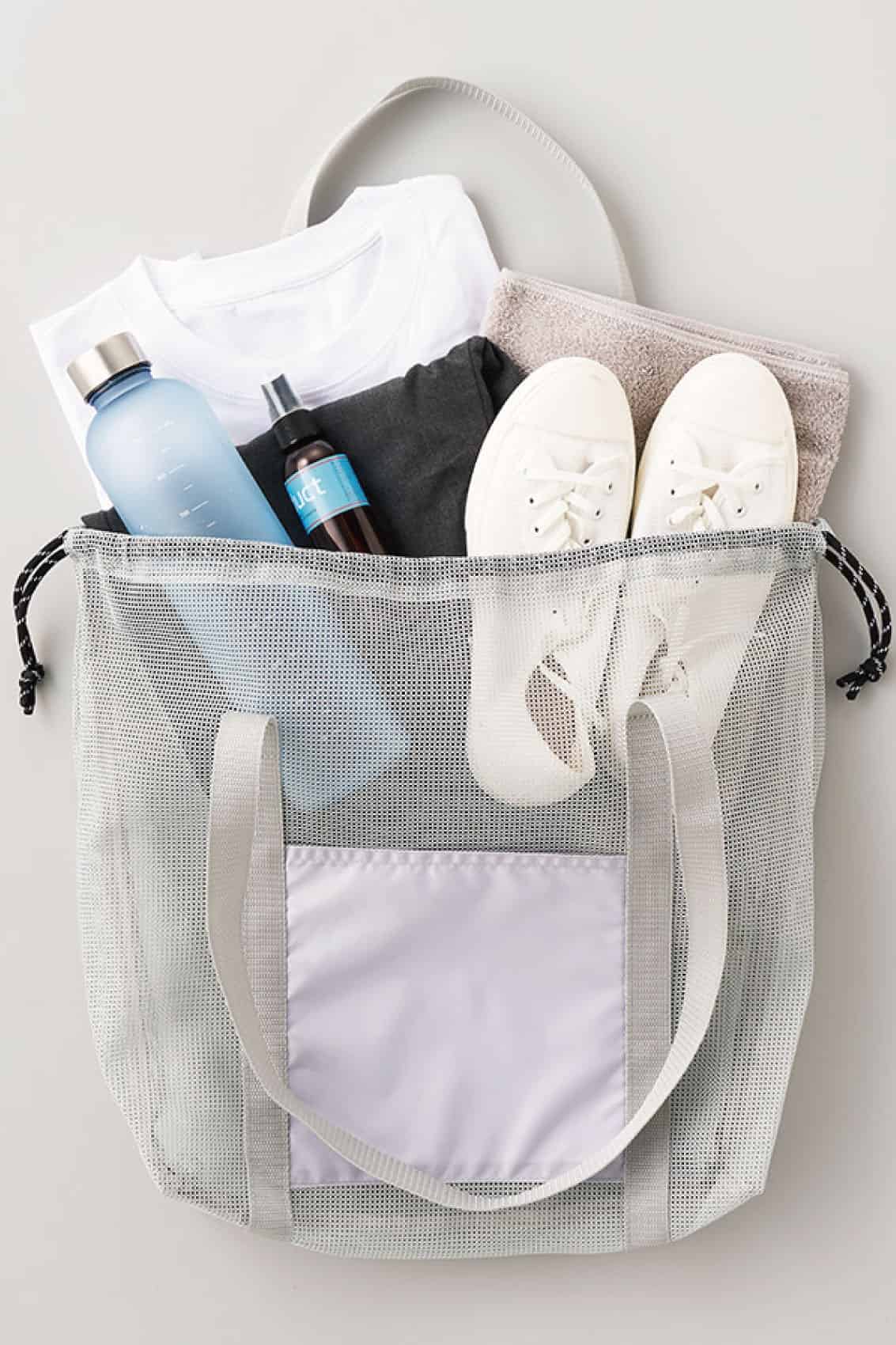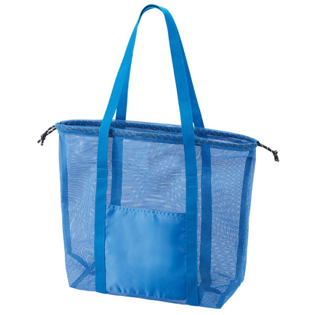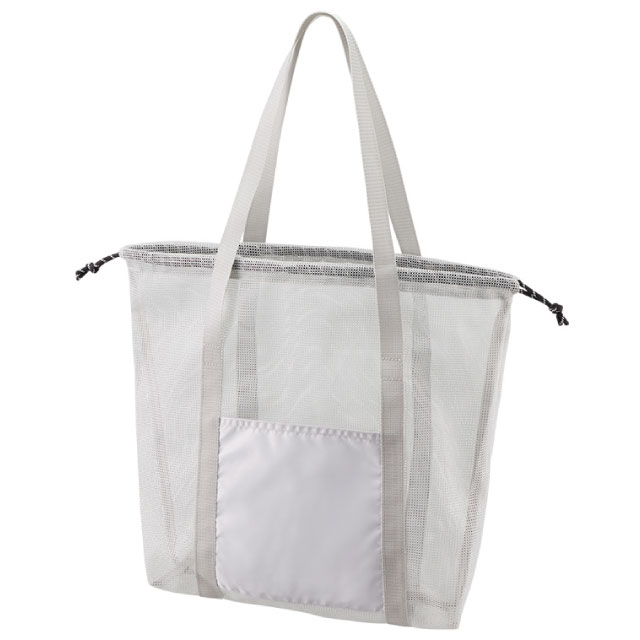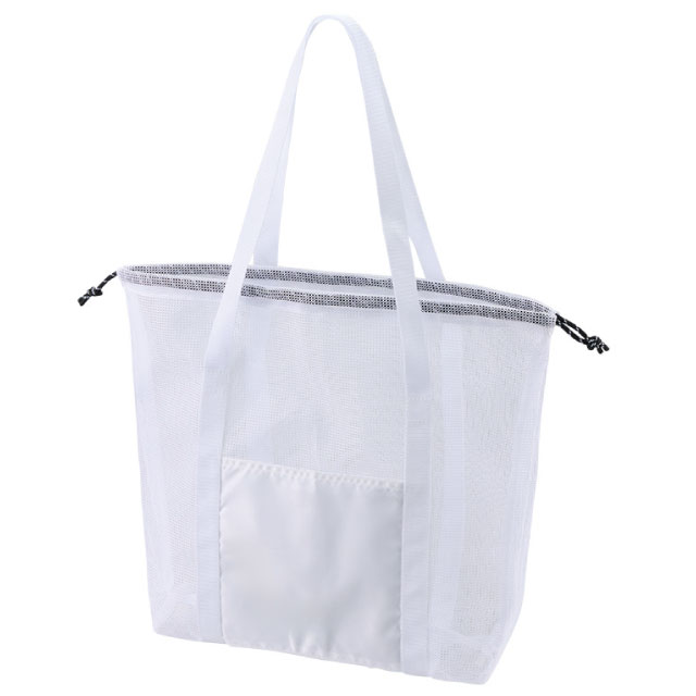 TR-1434 | MARKLESS STYLE中身が飛び出さない巾着仕様の、大容量なメッシュトートバッグです。容量はたっぷり入る約17Lサイズで、飲料ボトルやバスタオルなどの大きな荷物も余裕で収まります。広い外ポケットはスマホの整理だけでなく、フルカラー印刷も映える名入れスペースとして活躍。用途に合わせて選べる3サイズ展開で、レジャーや大型イベントの物販用としても活用いただけます。