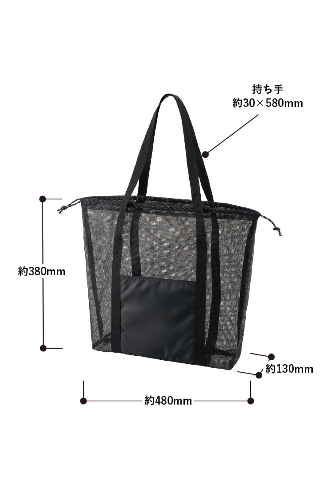 | 本体サイズ | 本体:約縦38×横48×マチ13 持ち手:約長さ58×幅3 ポケットサイズ:縦20×横19 |