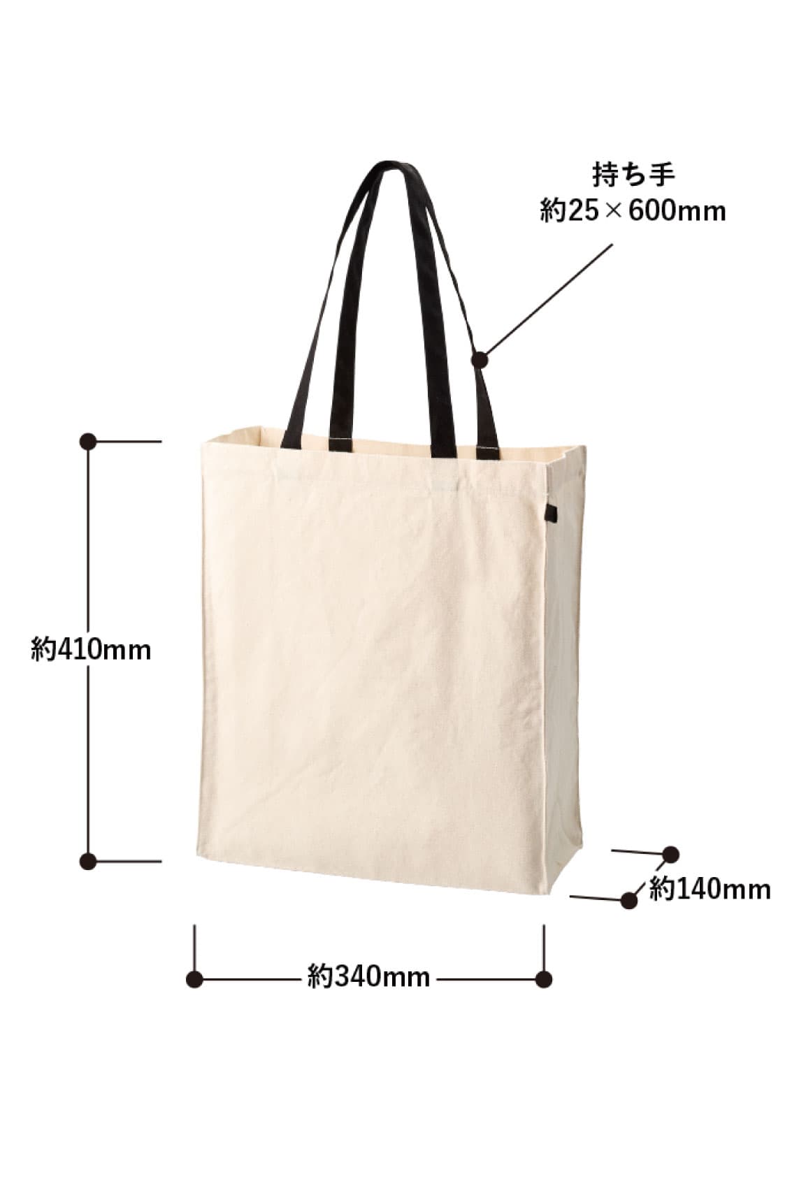 | 本体サイズ | 本体:約縦41×横34×マチ14 持ち手:約長さ60×幅2.5 |