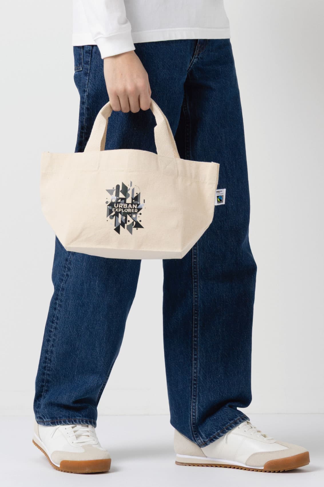 バッグ全ての部分にフェアトレード認証のオーガニックコットンを使ったバッグ。Sサイズはお弁当入れやちょっとしたお出かけにぴったり。持ち手は二つ折り縫製で持ちやすくなっています。スマートフォンや鍵など、バッグの中で迷子になりがちな小物を入れることができる内ポケットがついているので、使いやすさも抜群です。国際フェアトレード認証コットンラベルも付いているので、企業様のSDGs活動を通したイメージアップにも貢献すること間違いなしです。