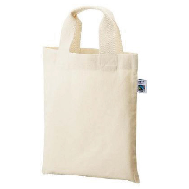 バッグ本体や持ち手、全ての素材に「フェアトレード認証」のオーガニックコットンを使用したバッグです。幅広い用途に使いやすい、A4サイズが入るマチのないバッグで、持ち手部分は持ちやすくしっかりと二つ折り縫製がされています。国際的に認められた素材を使用しているので、企業やショップのサステイナブルへの取り組みや安心安全をアピールするのにも適した商品です。※フェアトレードとは発展途上国の原料や製品を適正な価格で購入することで、そのような国の人々の生活改善や自立を支援する活動です。