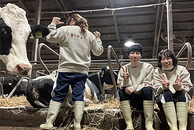 帯広畜産大学の公認サークル、うしぶ。です。日々、大学で飼っている牛の搾乳をしています。素敵なスウェットに仕上げていただき、ありがとうございます!生地も裏起毛でとても暖かいです。これを着て寒い日も搾乳頑張ります。畜大牛乳、是非飲んでください!